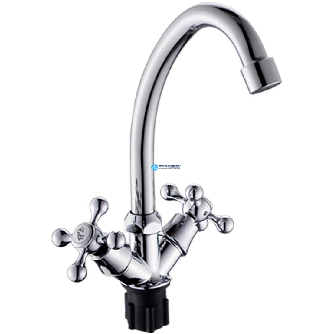 Смеситель для кухни с 2-мя рукоятками с высоким изливом, крепеж гайка, код 497065-ANT, производитель Антей