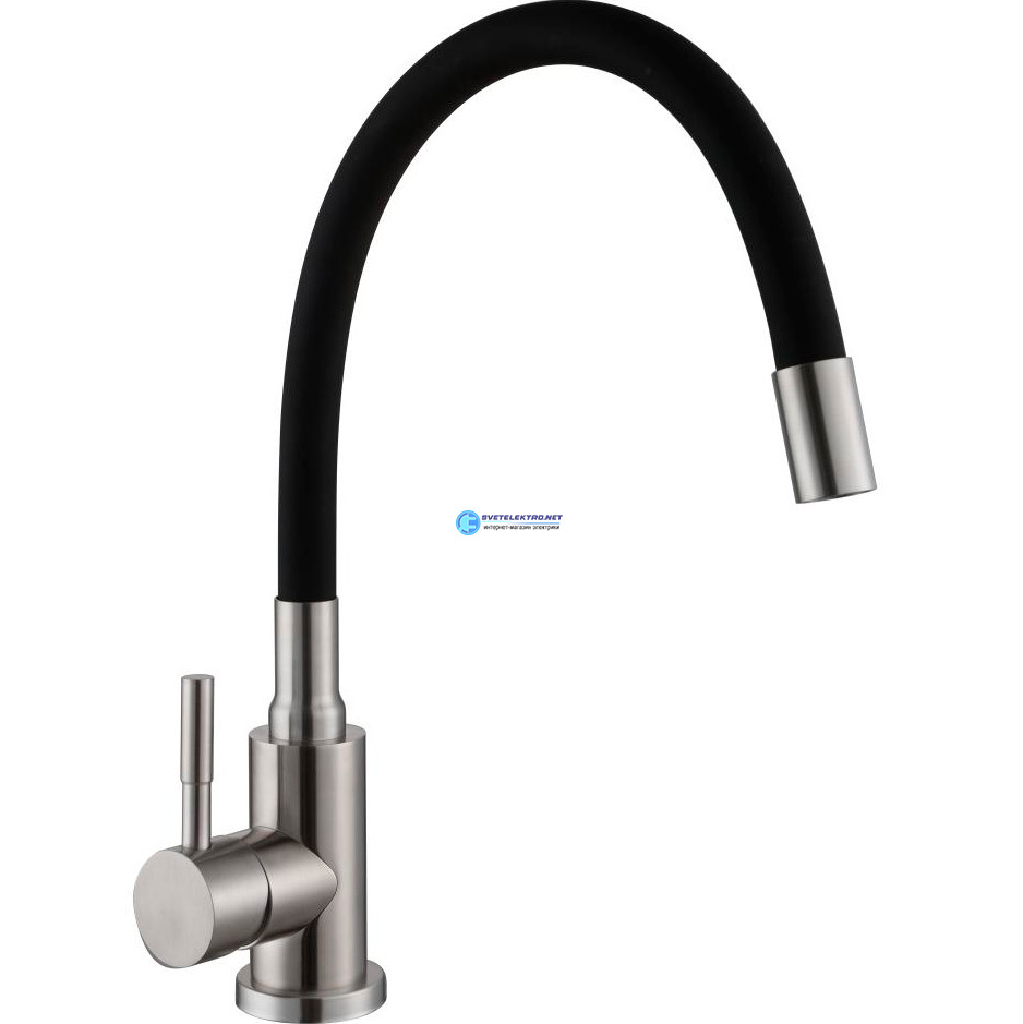 Смеситель для кухни шаровый с высоким силиконовым изливом черный нержавеющая сталь 511518-ANT Антей