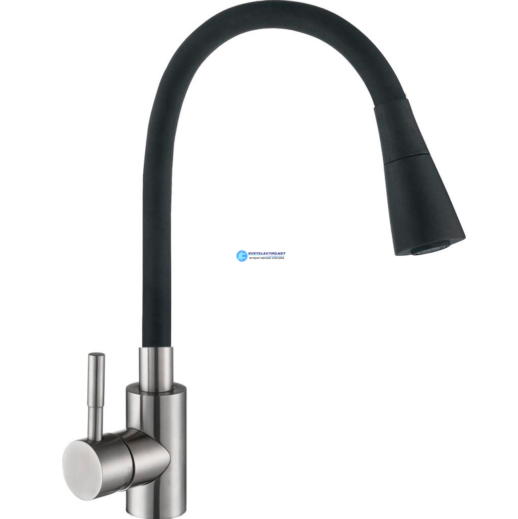 Смеситель для кухни шаровый с силиконовым изливом черный нержавеющая сталь 572576-ANT Антей