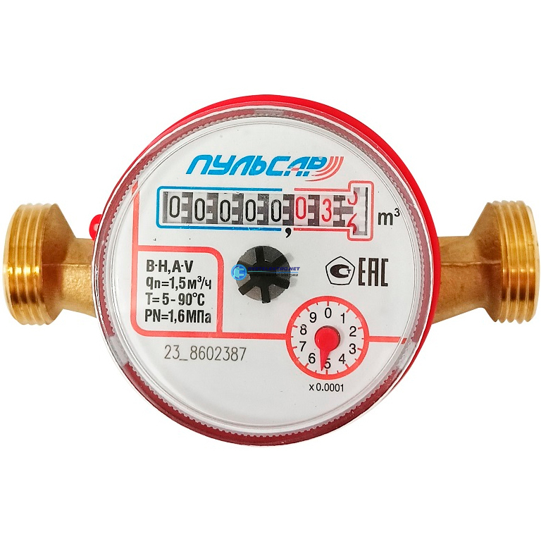 Счетчик воды универсальный Ду15, Qn=1,5 м3/час, L=110мм, (без присоединителей), код Н00022903, производитель Пульсар