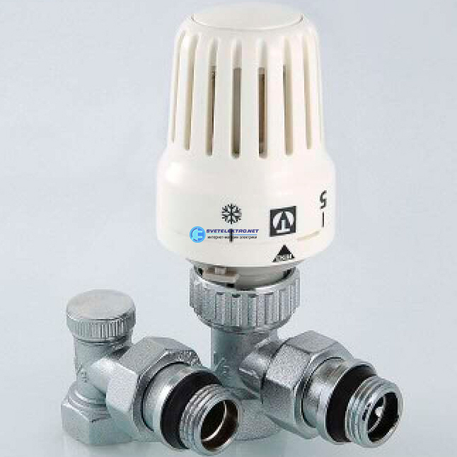 Термостатический комплект 1/2' угловой для отопительного прибора: термостатическая головка, термостатический клапан, отсечной клапан. R470FX003 Giacomini