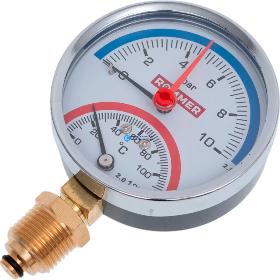 Термоманометр радиальный в комплекте с автоматическим запорным клапаном. Корпус Dn 80 мм 1/2 , 0...120°C, 0-4 бар RIM-0006-800415 Rommer