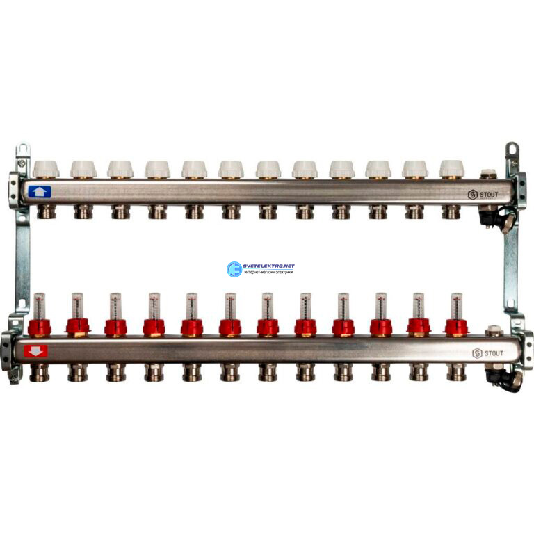 Коллектор из нержавеющей стали с расходомерами с клапаном выпуска воздуха и сливом 12 выходов RMS-1201-000012 Rommer