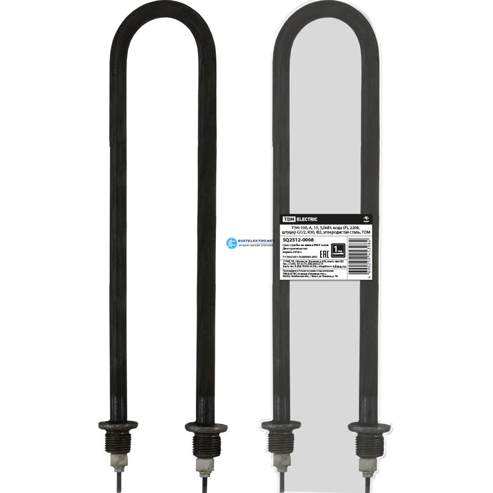 ТЭН-100, А, 13, 5,0кВт, вода (Р), 220В, штуцер G1/2, R30, Ф2, углеродистая сталь SQ2512-0008 TDM