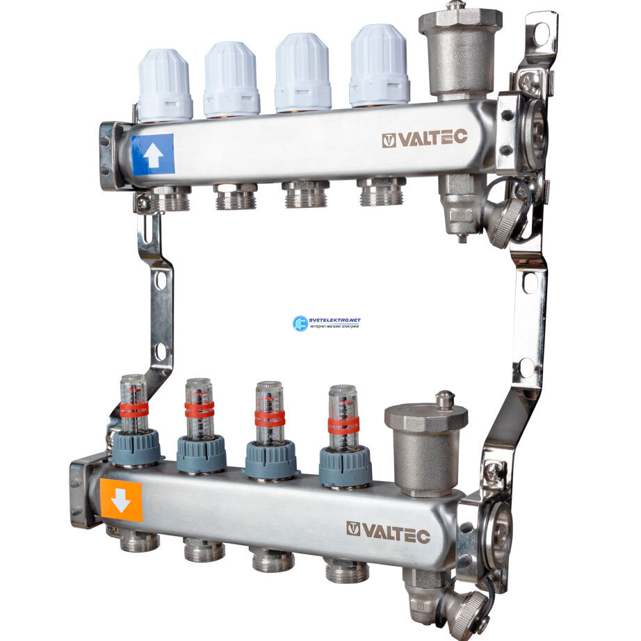 Коллекторный блок из нерж. стали с регул. клап. и расх., 1'х3 вых. Евроконус 3/4', код VTc.579.EMNX.0603, производитель VALTEC