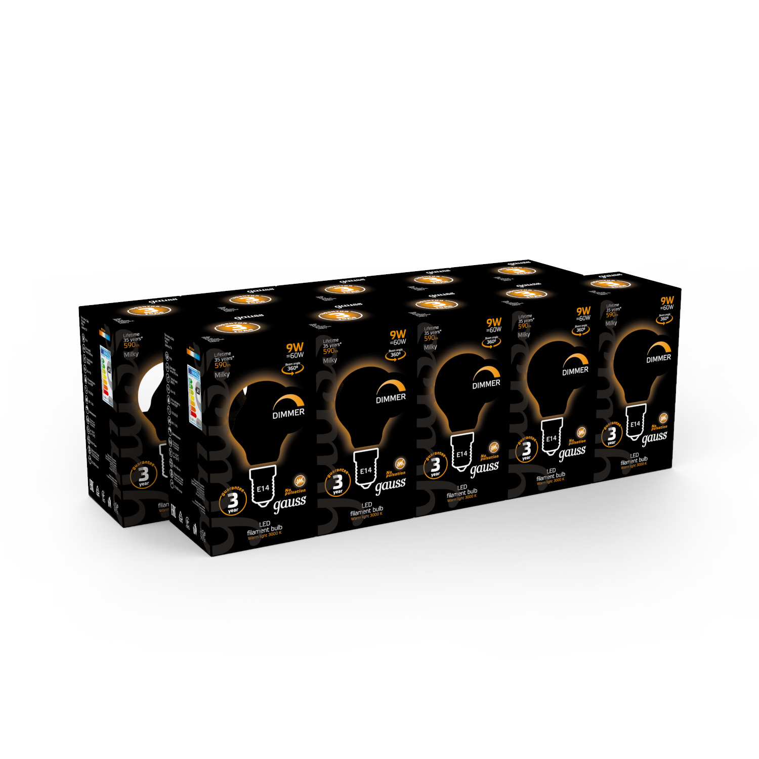 Лампа светодиодная филаментная LED Вт лм 3000К шар P45 теплый E14 AC 220В матовая колба диммируемая Black Filament, код 105201109-D, производитель GAUSS