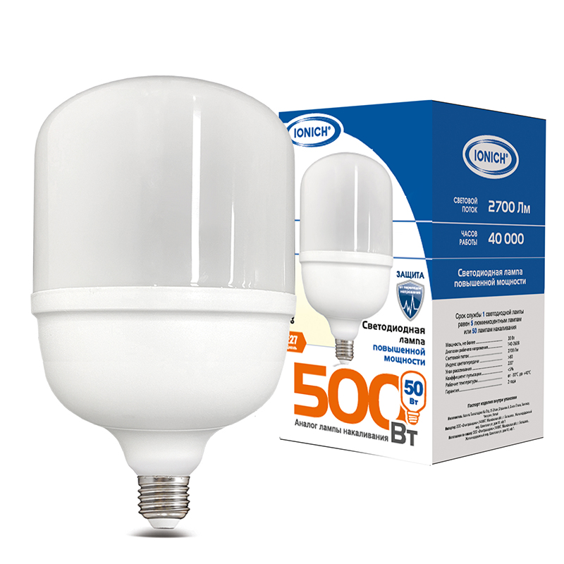 Лампа светодиодная E27 50Вт 4000К 4500Лм Т125 220В, код 1507, производитель IONICH