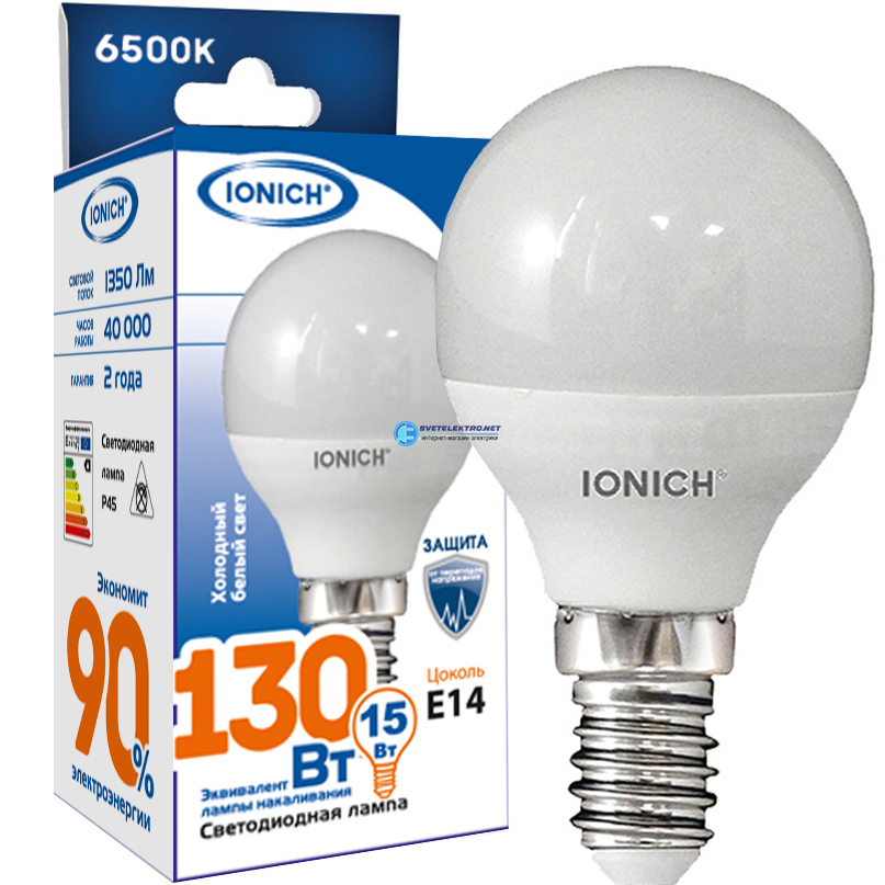 Лампа светодиодная E14 15вт 6500К 1350Лм P45 декоративного освещения шар, код 1817, производитель IONICH