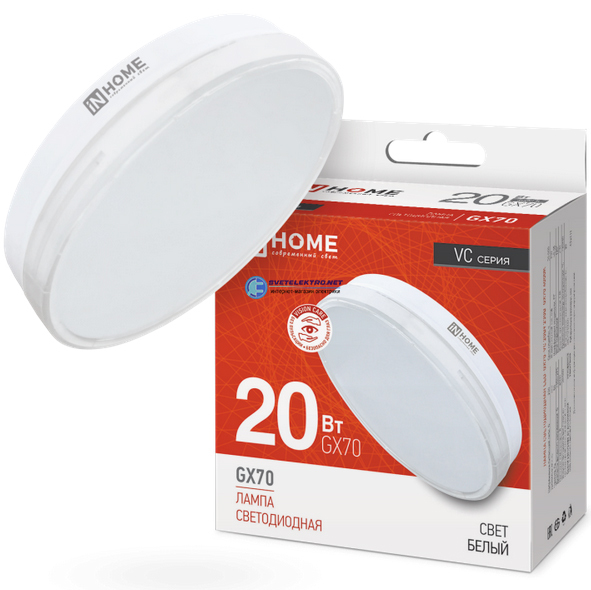 Лампа светодиодная GX70 20Вт 4000К 1900Лм 230В, код 4690612021515, производитель IN HOME