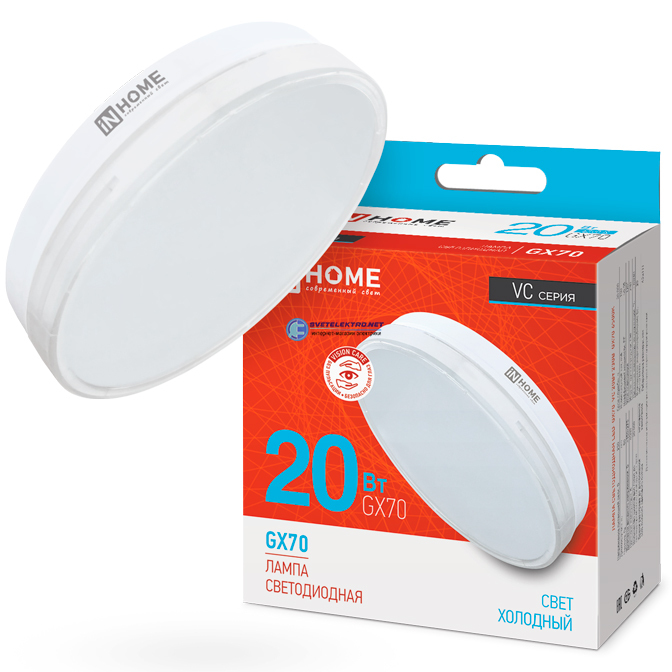 Лампа светодиодная GX70 20Вт 6500К 1900Лм 230В, код 4690612021539, производитель IN HOME