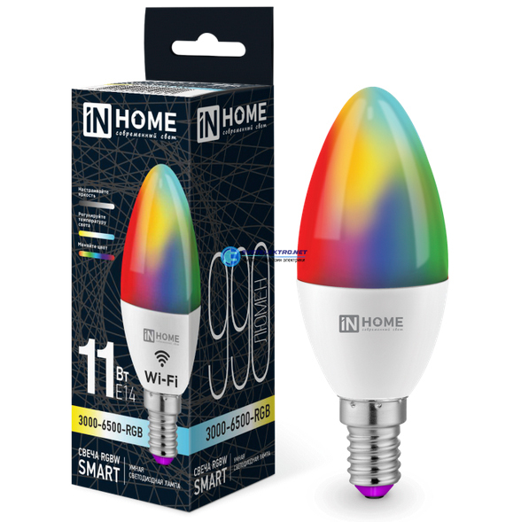 Лампа светодиодная Е14 11Вт 3000-6500К 990Лм СВЕЧА-RGBW-SMART 230В димм., код 4690612050041, производитель IN HOME