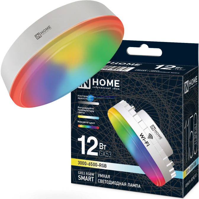 Лампа светодиодная GX53 12Вт 3000-6500К 1150Лм 230В димм. RGBW-SMART, код 4690612050089, производитель IN HOME