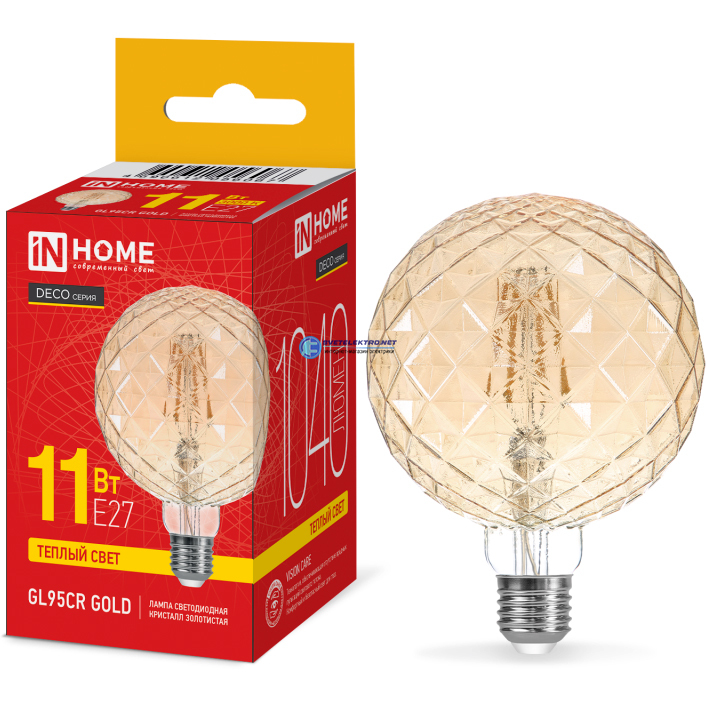 Лампа светодиодная E27 11Вт 3000K 1040Лм GL95СR deco gold кристалл золотистая, код 4690612056067, производитель IN HOME