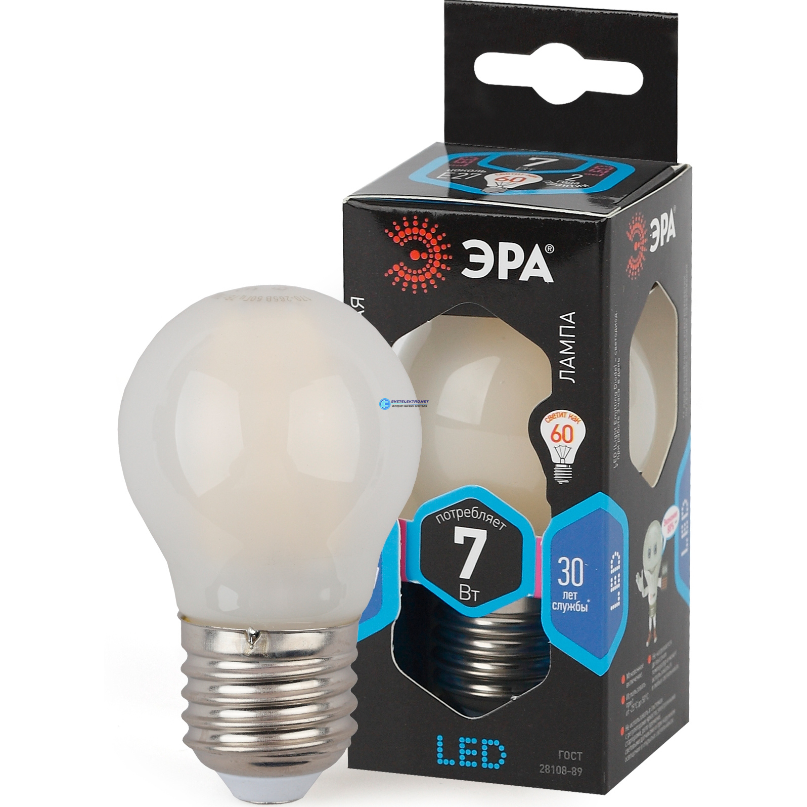 Лампа светодиодная Е27 7вт 4000К 655Лм P45 шар филамент нейтральный 170 265В F frost Б0027959 ЭРА
