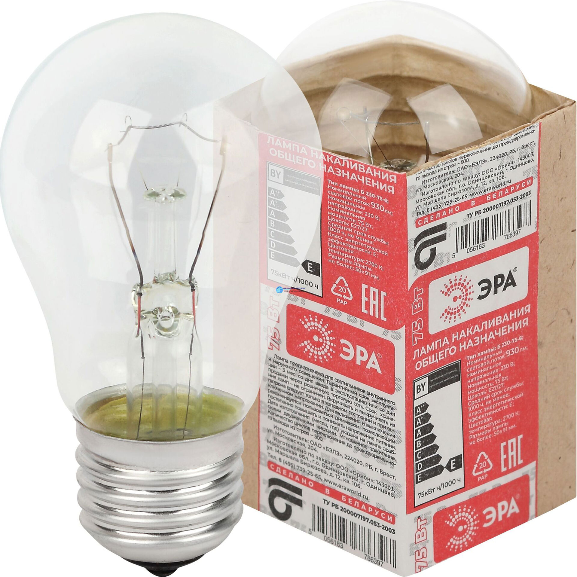 Лампа накаливания ЛН 75Вт 230В A50 Е27/E27 груша прозрачная в гофре, код Б0039119, производитель ЭРА