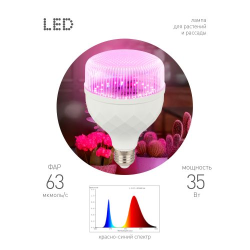 Фитолампа для растений светодиодная GREEN LINE ФИТО-35W-PL-E27-GR красно-синего спектра 35 Вт Е27, код Б0064580, производитель ЭРА