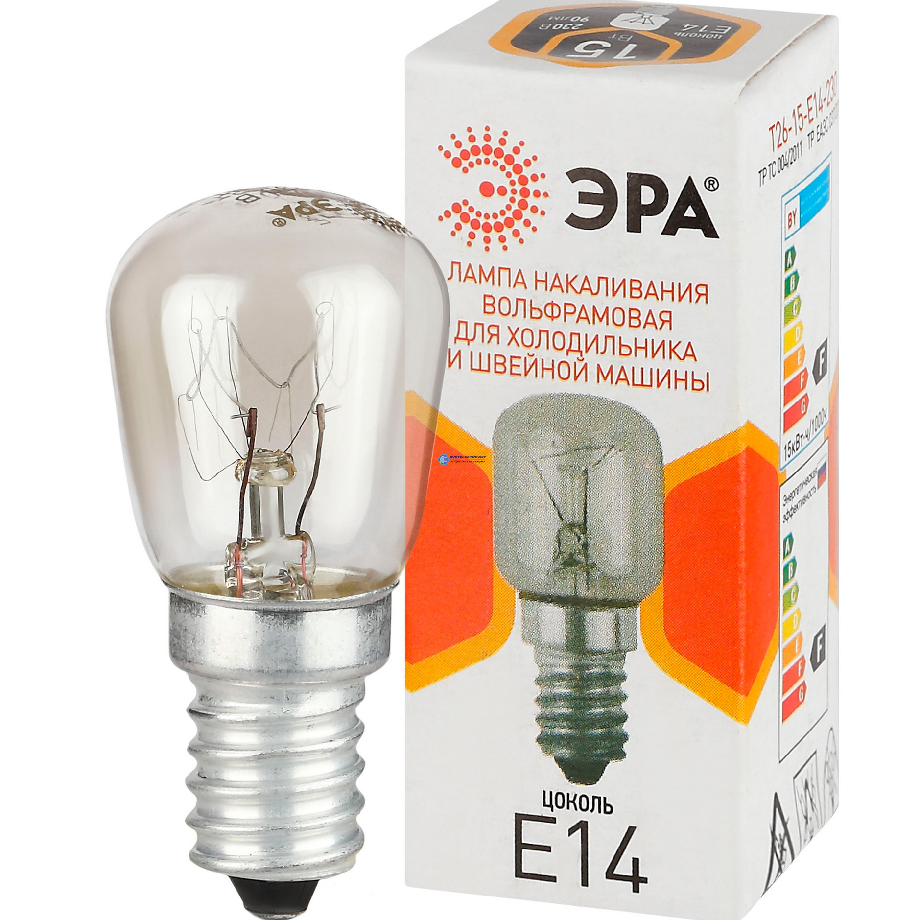Лампа накаливания 15Вт 230В для холодильника и швейной машины цветная коробка Е14 T26-15-E14-230, код Б0066403, производитель ЭРА
