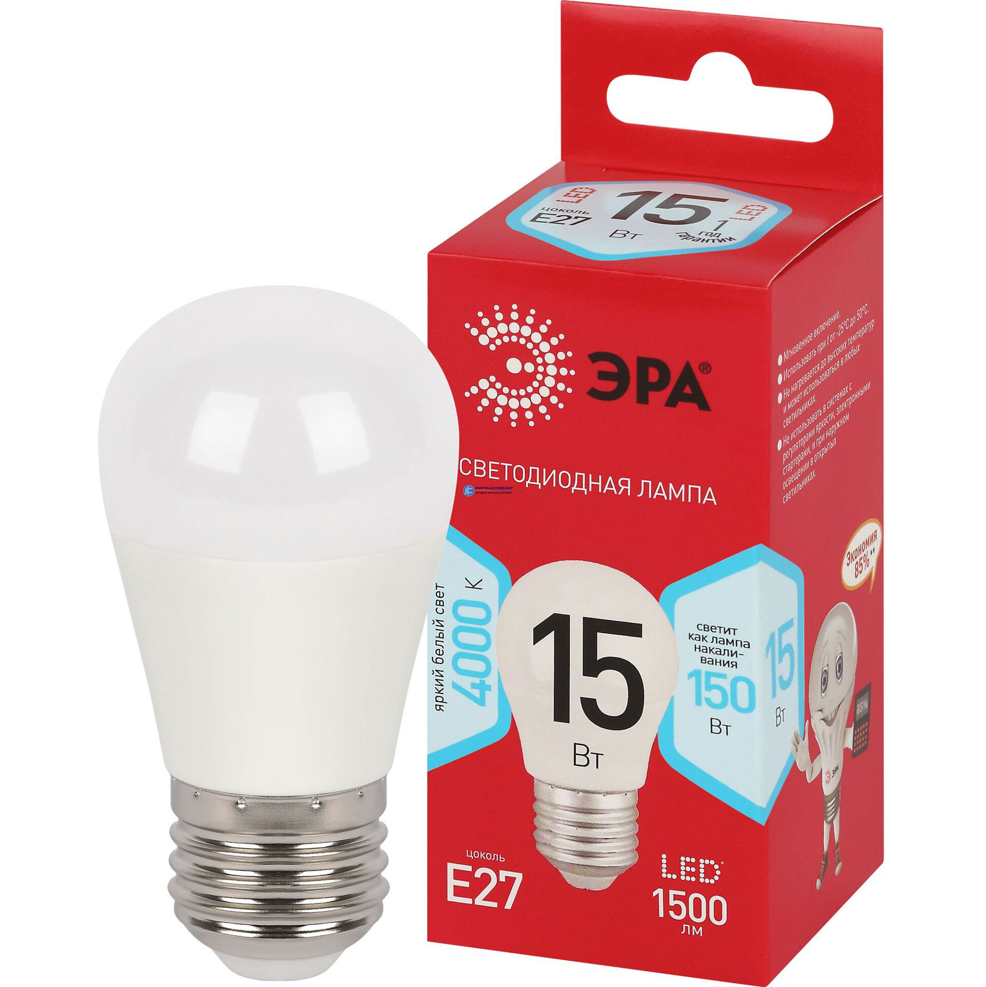 Лампа светодиодная E27 15вт 4000К 1500Лм P45 шар RED LINE, код Б0070102, производитель ЭРА