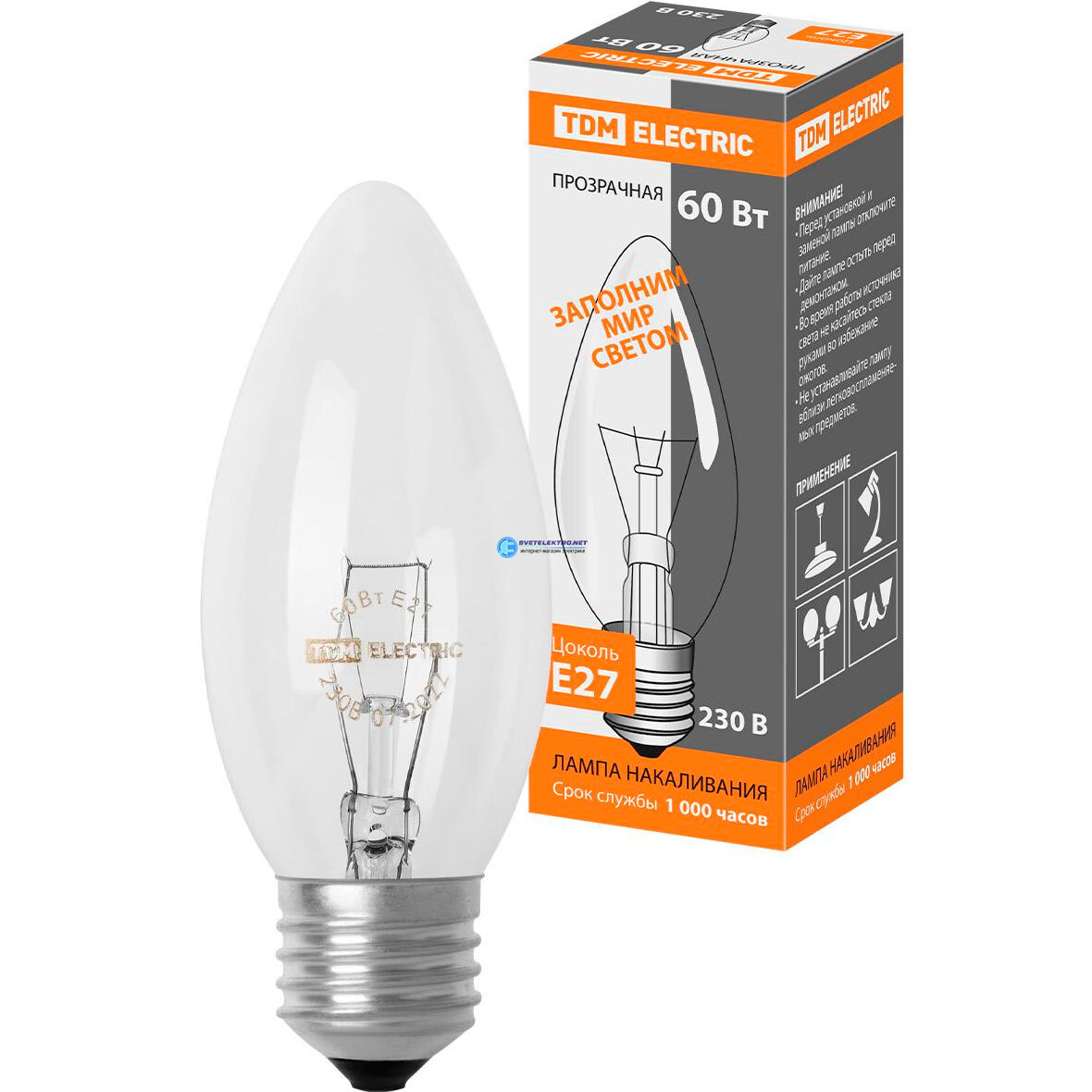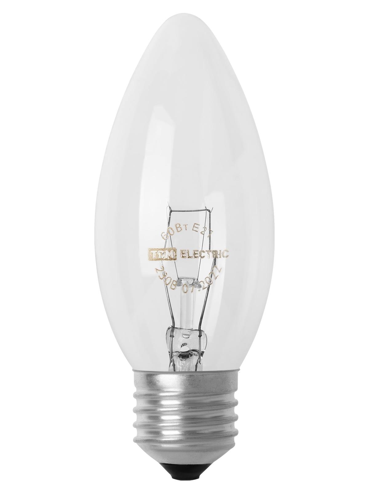 Лампа накаливания Е27 60вт 230в Свеча прозрачная, код SQ0332-0012, производитель TDM