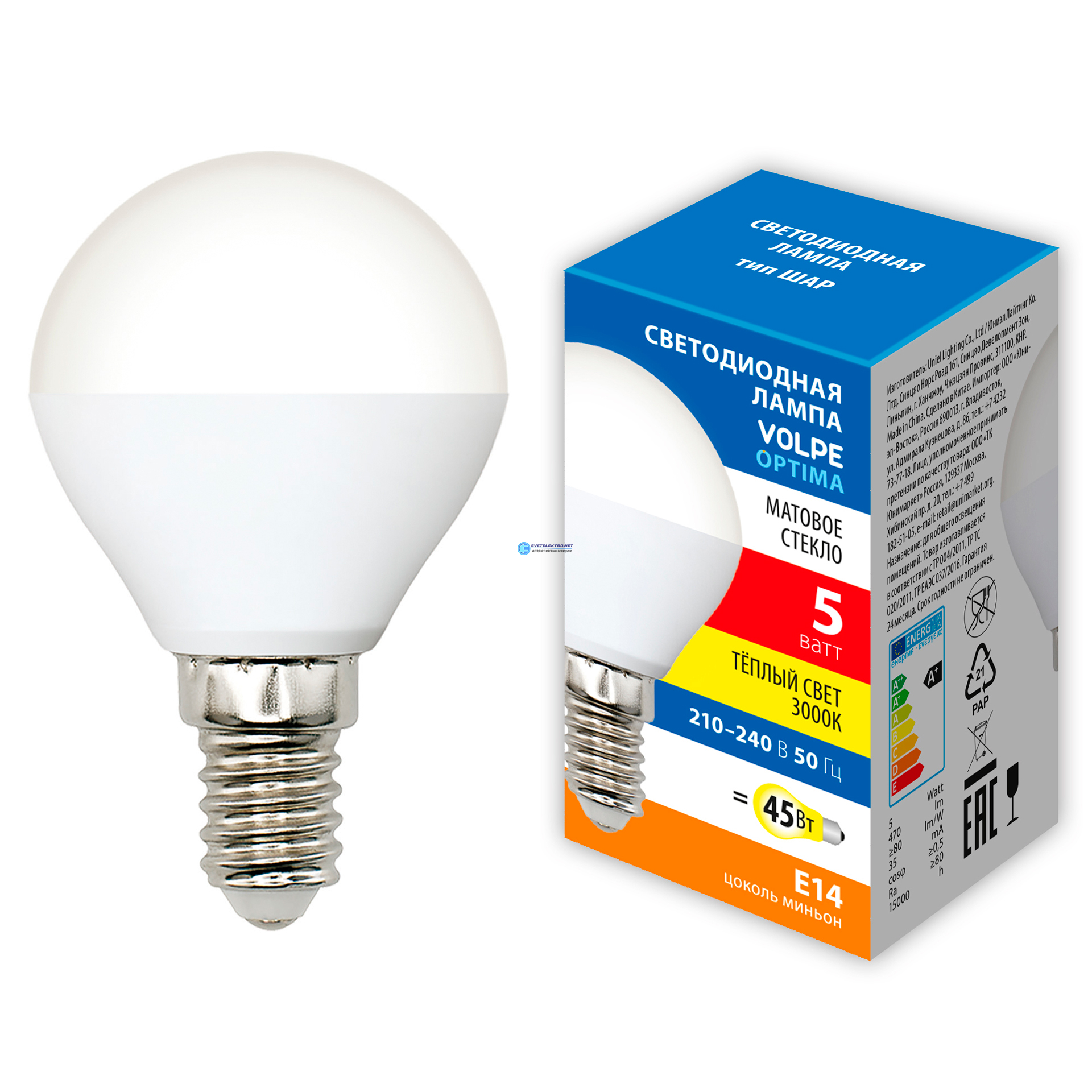 Лампа светодиодная E14 5вт 3000K 470Лм G45 FR SLS шар матовая, код UL-00008812, производитель Uniel