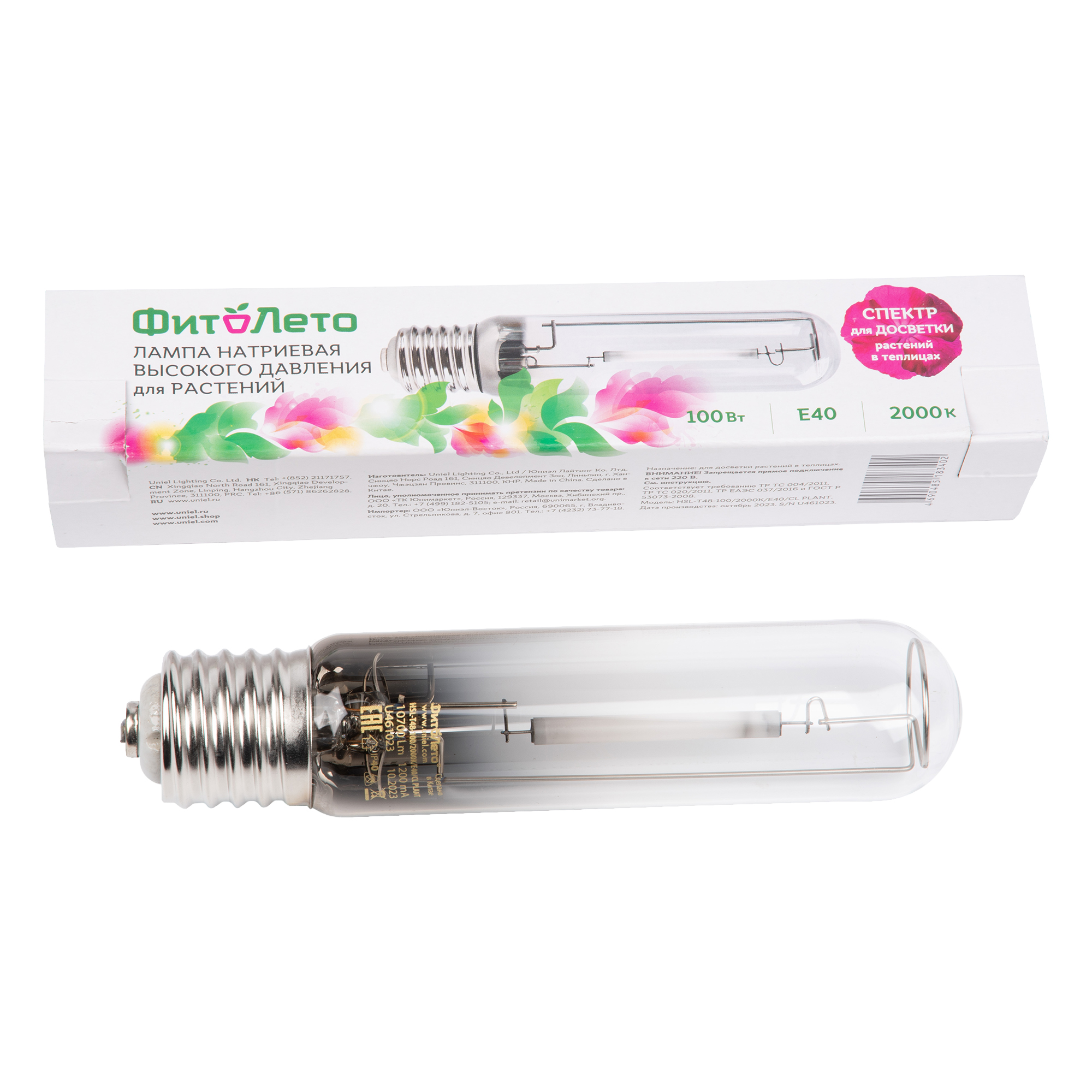 Лампа натриевая высокого давления для растений Форма T прозрачная 100вт Цоколь Е40 Теплый белый свет 2000К + спектр для фотосинтеза Картон ТМ ФитоЛ UL-00011197 Uniel