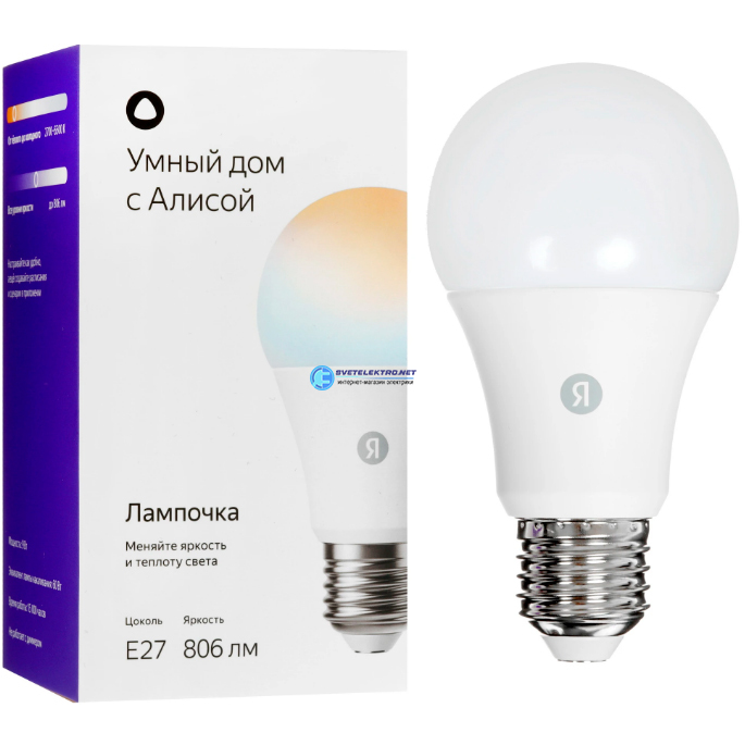 Лампочка умная Яндекса Е27, код YNDX-00551, производитель Yandex