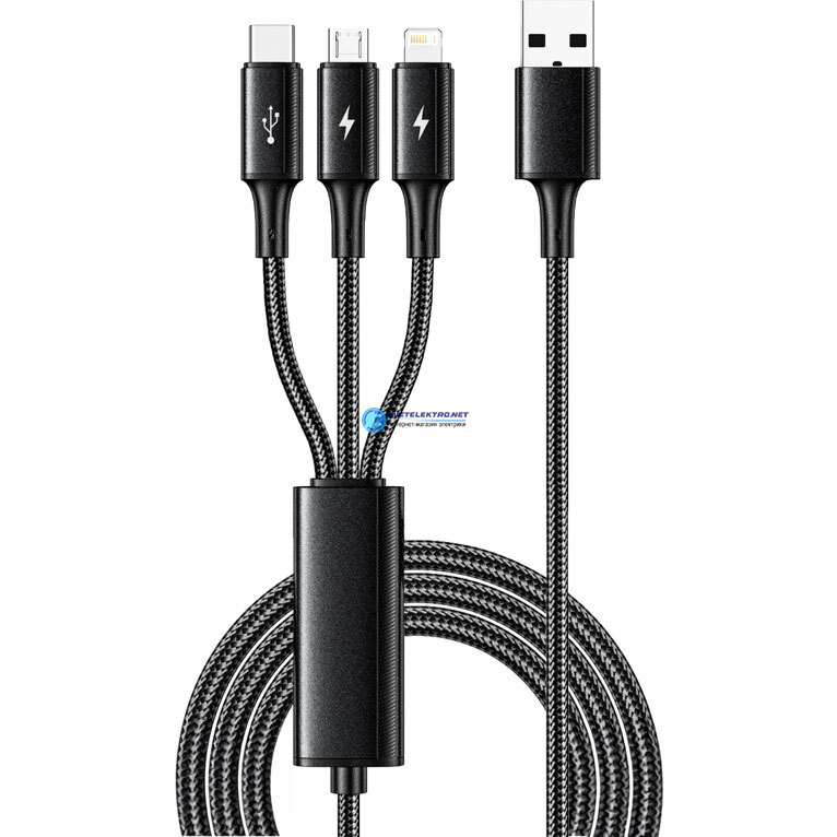 Кабель USB 3в1 Type-С, Lightning, micro USB, 1.2м., черный, код 18-7075, производитель REXANT