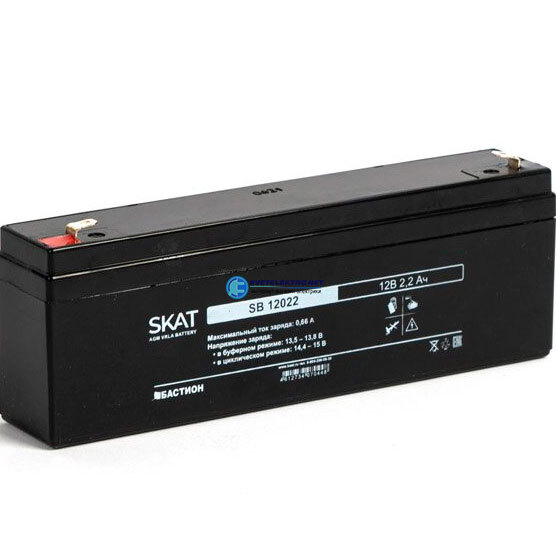 Аккумулятор SKAT SB 12022 свинцово-кислотный тип AGM 12V 2,2Ач Iзар.0,66 А, ножевые клеммы, код 2539, производитель Бастион