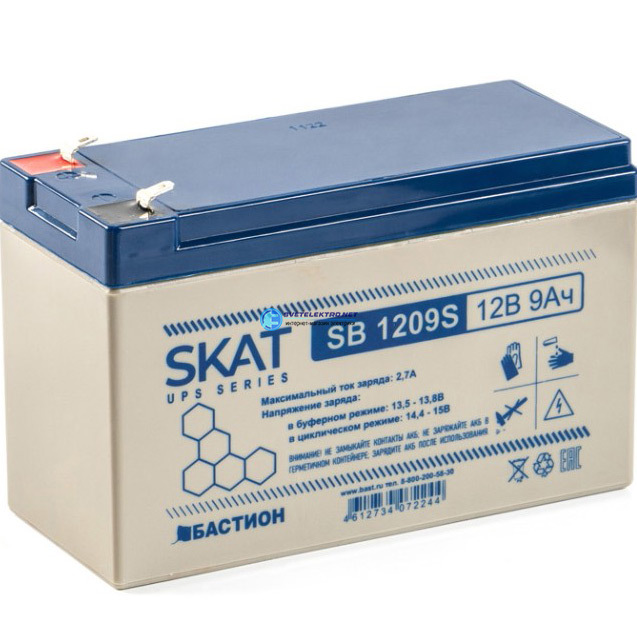Клеммы ножевые SKAT SB 1209S АКБ свинцово-кислотная тип AGM 12V 9Ач Iзар. 2,6 А 8970 Бастион