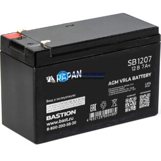 RAPAN SB 1207 АКБ свинцово-кислотная тип AGM 12V 7Ач Iзар.2,1А, ножевые клеммы 9163 Бастион