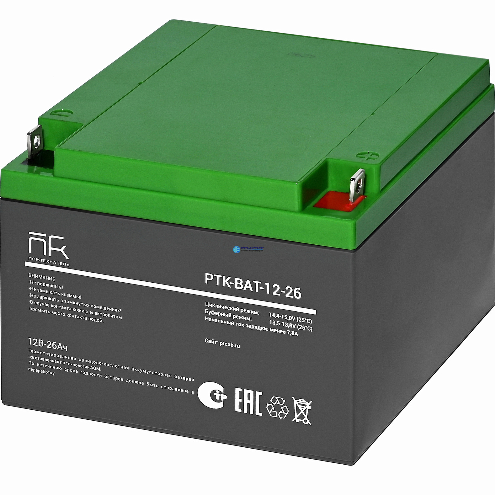 Аккумуляторная батаеря 12В/26Ач cвинцово-кислотная, герметизированная, AGM, необслуживаемая с системой рекомбинации газов., код PTK-BAT-12-26, производитель ПожТехКабель