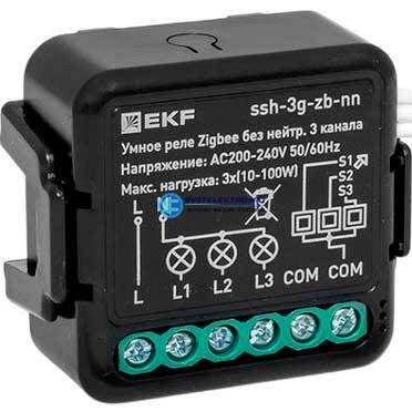 Умное реле в подрозетник 3-канальное без нейтрали Zigbee Connect Select, код ssh-3g-zb-nn, производитель EKF