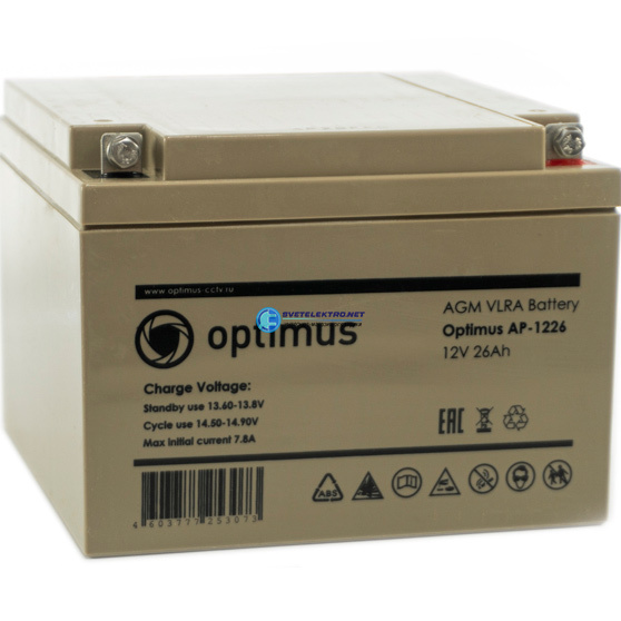 Аккумуляторная батарея AP-1226 26ач 12в, код В0000012052, производитель Optimus CCTV