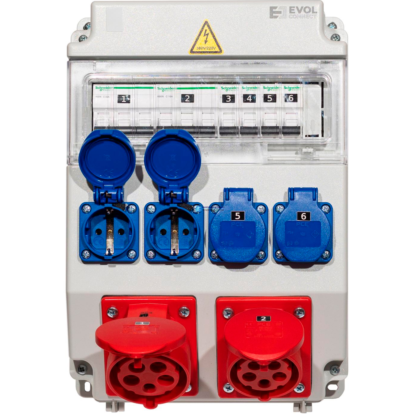 | Комплектация: | вход – сальник М32 – 1 шт|клеммы 10 мм – 1 комп|выход – розетка CEE (32A/380v/5p/IP44) – 1 шт|розетка CEE (16A/380v/5p/IP44) – 1 шт|розетка schuko (16A/220v/3p/IP54) – 4 шт|защита – автоматический выключатель (32A/3,С,6kA) – 1 шт|автоматический выключатель (16A/3,С,6kA) – 1 шт|автоматический выключатель (16A/1,С,6kA) – 4 шт, |