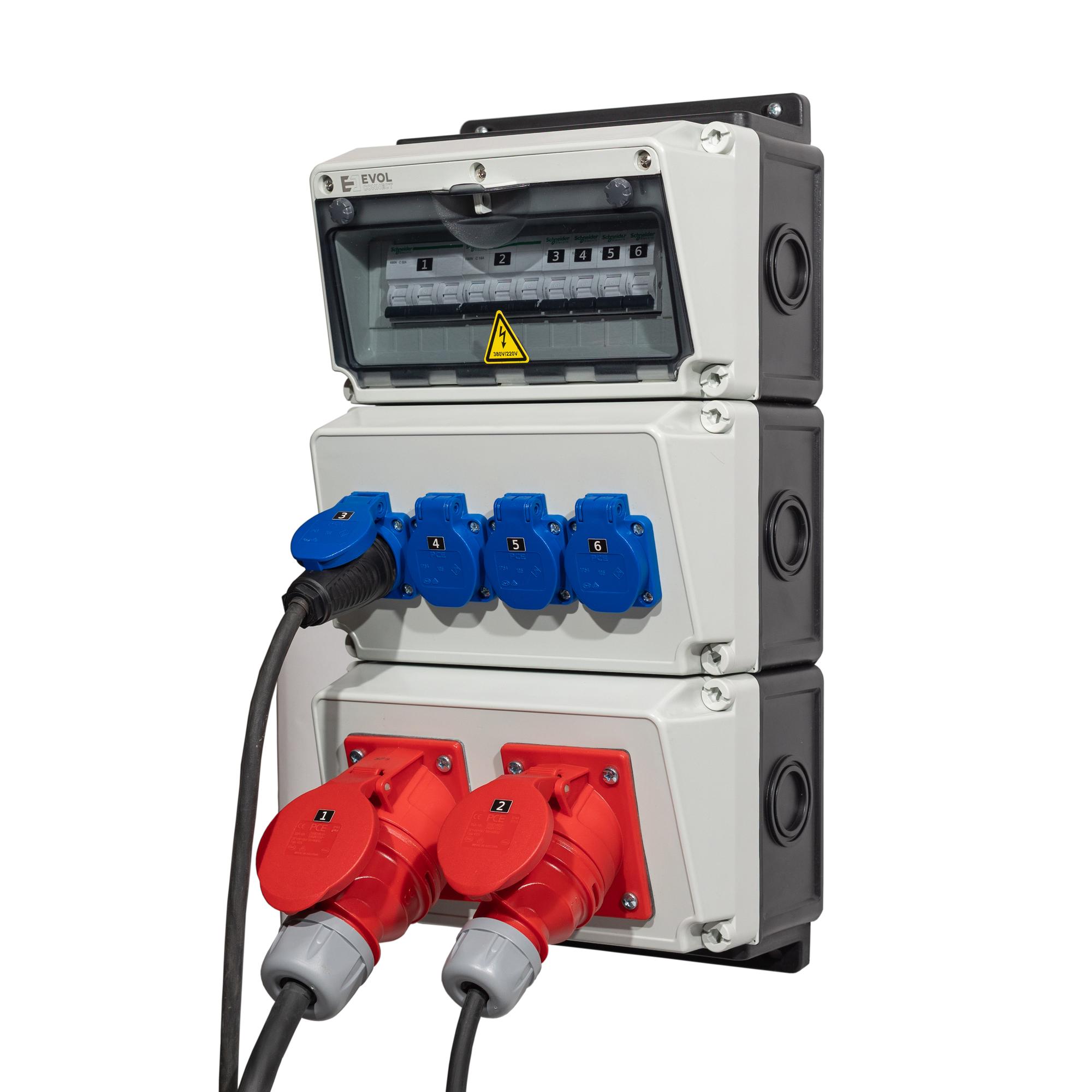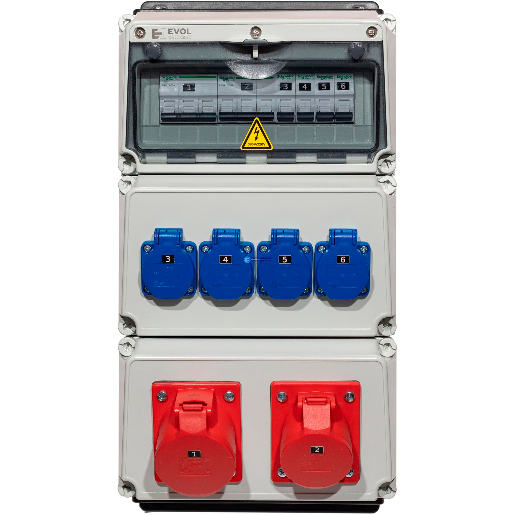 | Комплектация: | вход – сальник М32 – 1 шт|клеммы 10 мм – 1 комп|разъемы – розетка CEE (16A/380v/5p/IP44) – 1 шт|розетка CEE (32A/380v/5p/IP44) – 1 шт|розетка schuko (16A/220v/3p/IP54) – 4 шт|защита – автоматический выключатель (3p 16A С 6кА) – 1 шт|автоматический выключатель (3p 32A С 6кА) – 1 шт|автоматический выключатель (1p 16A С 6кА) – 4 шт, |