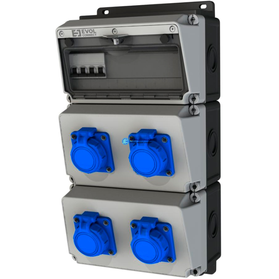 | Комплектация: | вход – сальник М32 – 1 шт|клеммы 10 мм – 1 комп|разъемы – розетка schuko (16A/220v/3p/IP68) – 4 шт|защита – автоматический выключатель (1p 16A С 6кА) – 4 шт, |