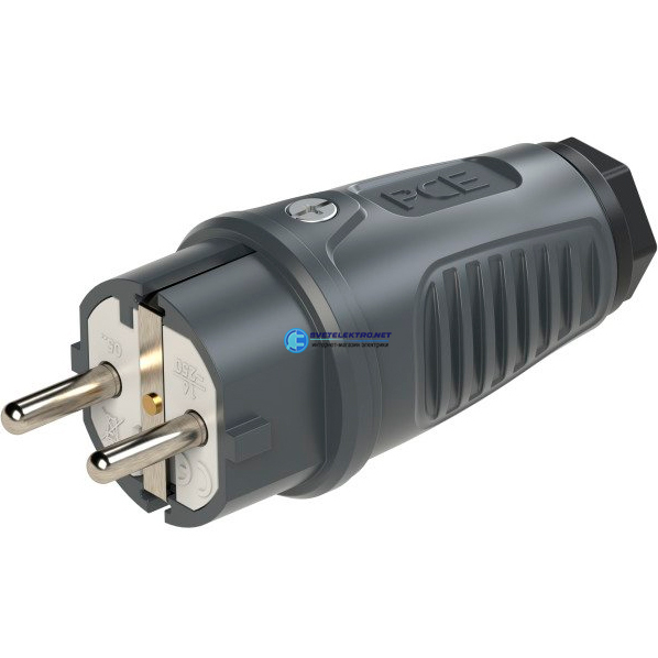 Вилка каб 16A 220В 2P+E/IP54 корпус темносерый, маркер черный, код 0511-as, производитель PCE