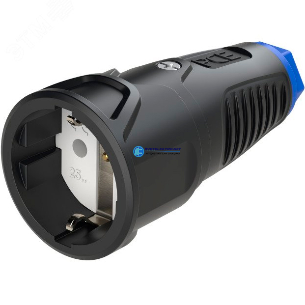 Розетка каб 16A 220В 2P+E/IP20 корпус черный, маркер синий, код 2510-sb, производитель PCE