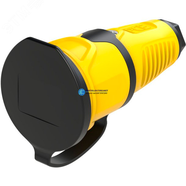 Розетка каб 16A 220В 2P+E/IP54 корпус желтый, крышка и маркер черный, код 2511-es, производитель PCE