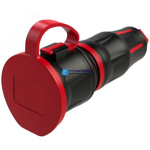Розетка каб 16A 220В 2P+E/IP54 с крышкой, корпус черный, крышка и маркер красный, код 25711-sr, производитель PCE