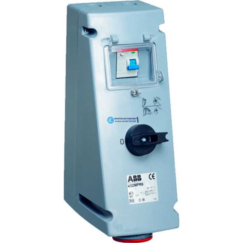 Розетка 16A 3P+N+E 6ч с УЗО в боксе IP44 защита блокировка, код 416 MPR6, производитель ABB