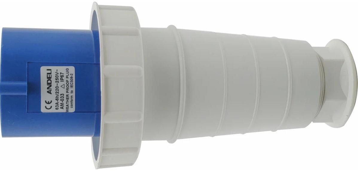 Вилка переносная AM-033 63A 220V/250V 2P+E IP67, код ADL13-007, производитель ANDELI