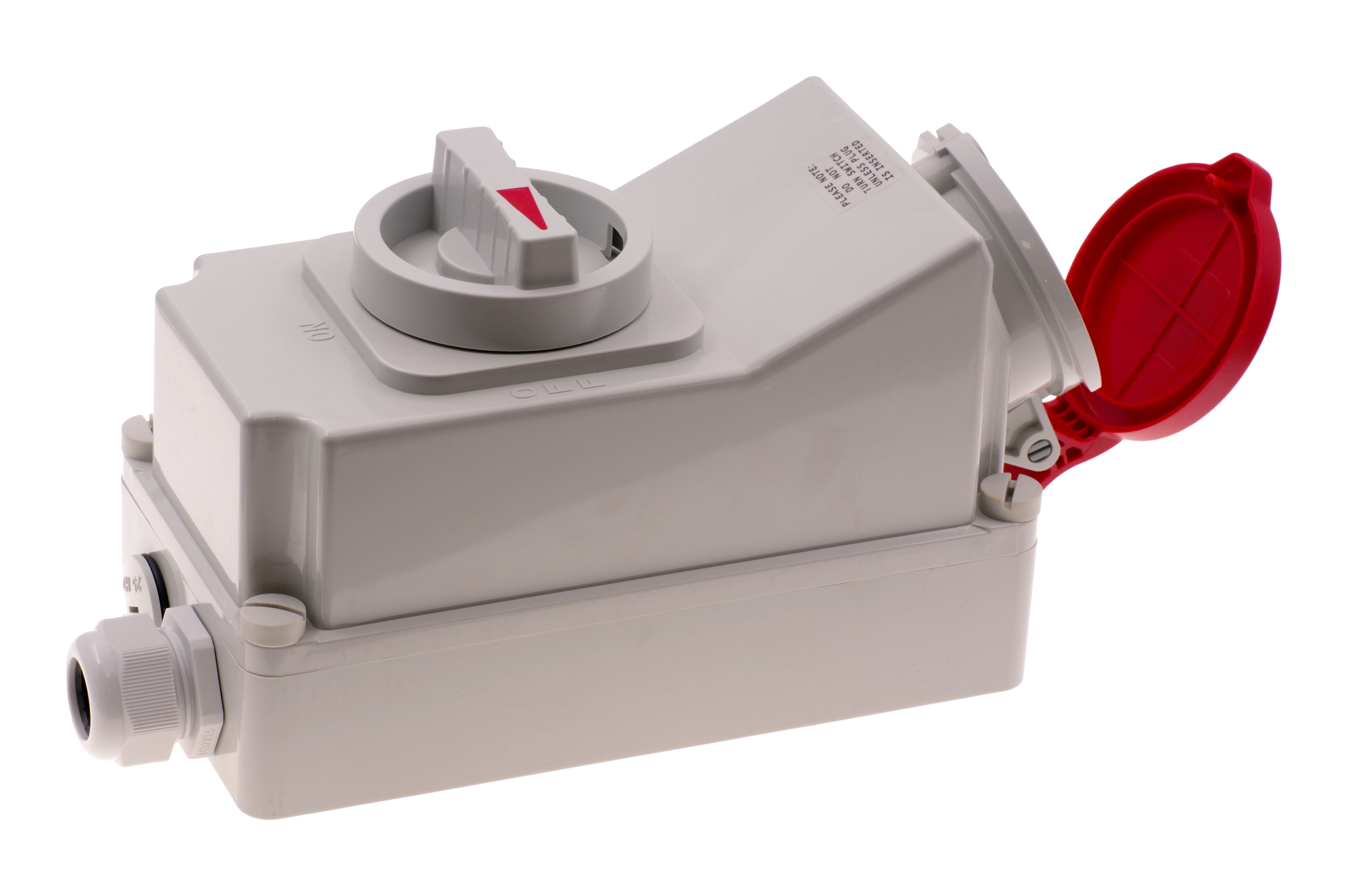 Розетка накладная с выключателем и механической блокировкой 32A 380В 3P+N+E IP44, код CA5108, производитель INPIN