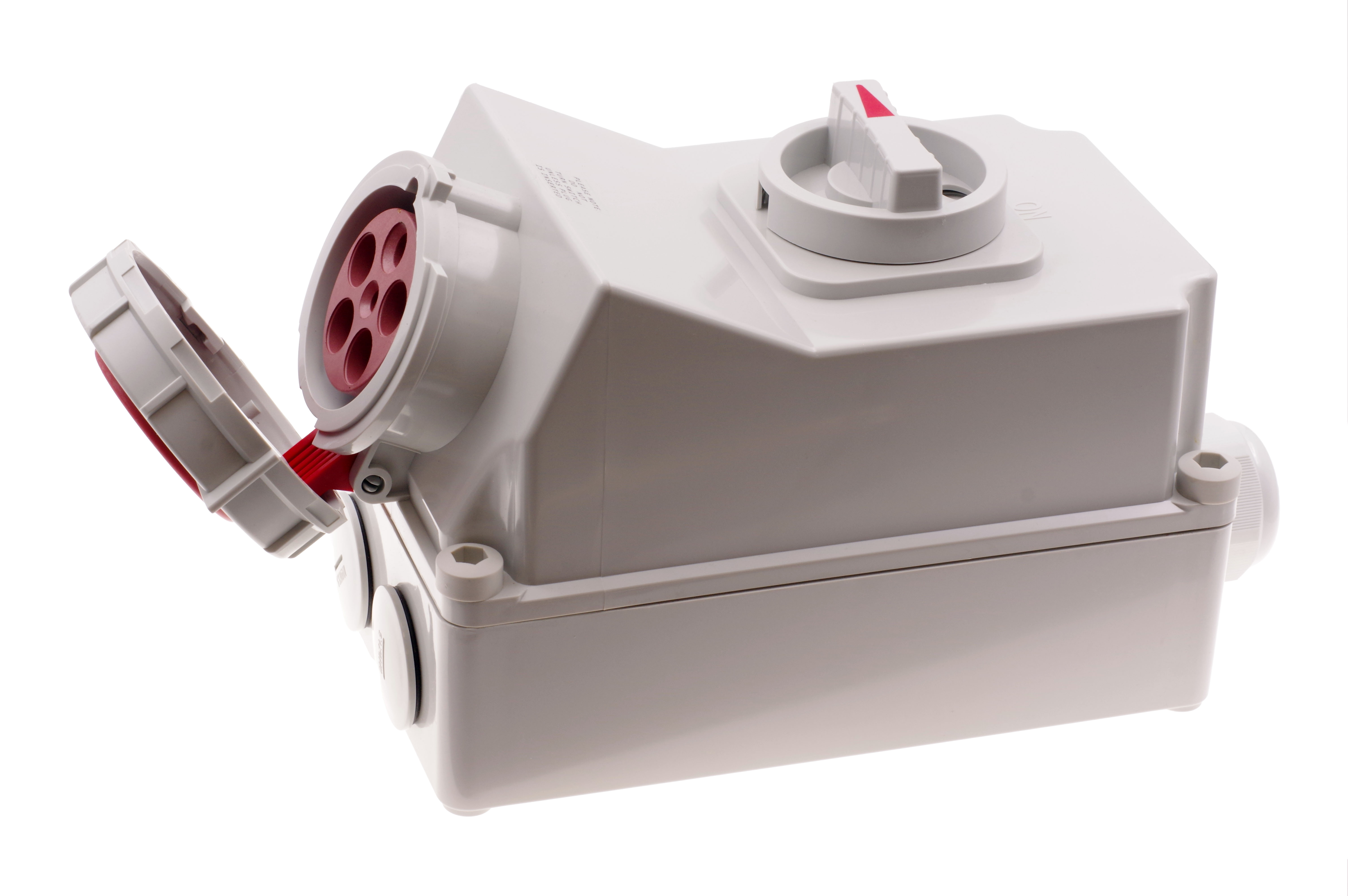 Розетка накладная с выключателем и механической блокировкой 63A 380В 3P+N+E IP67, код CA5113, производитель INPIN