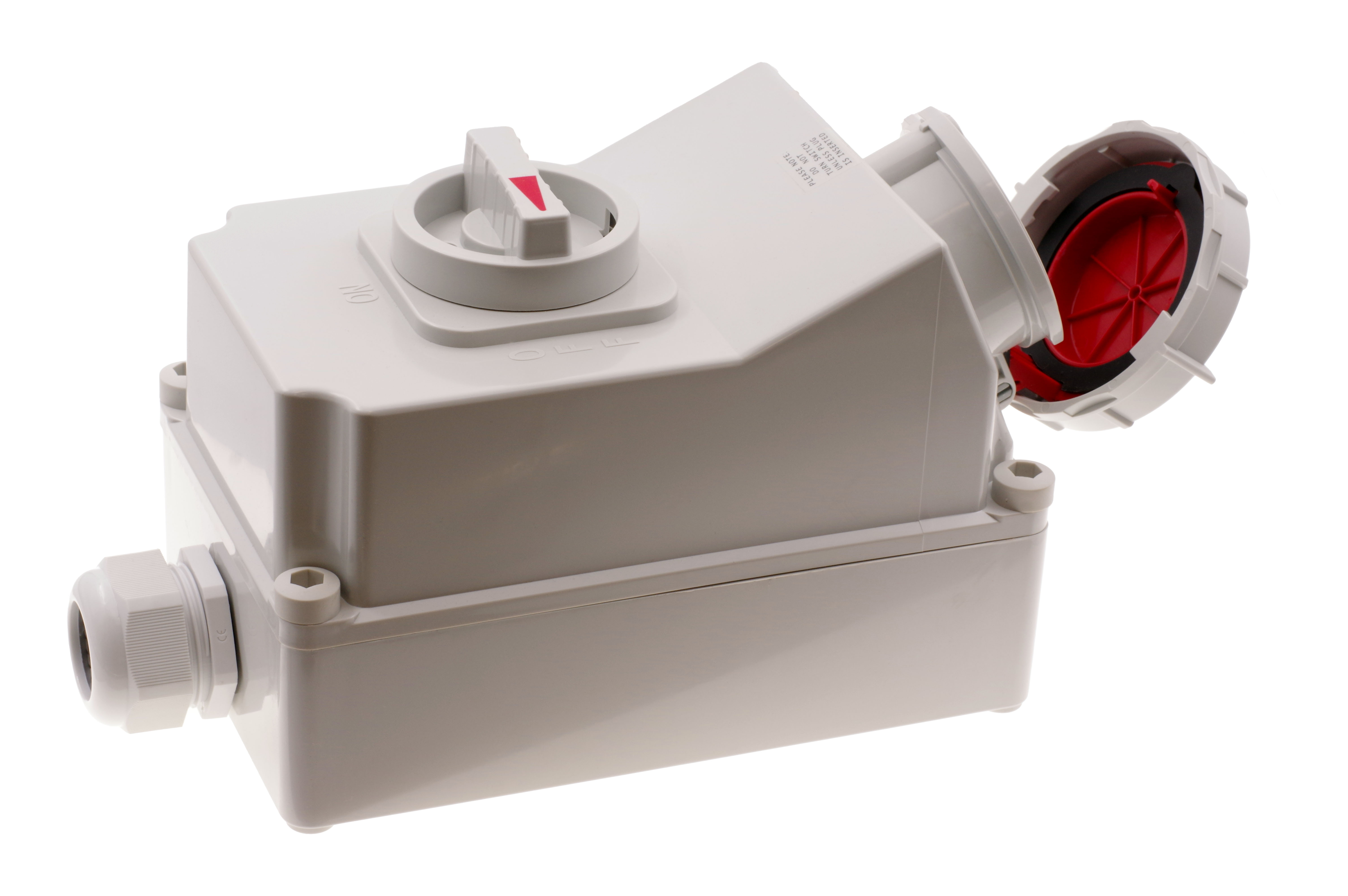 Розетка накладная с выключателем и механической блокировкой 63A 380В 3P+N+E IP67 CA5113 INPIN