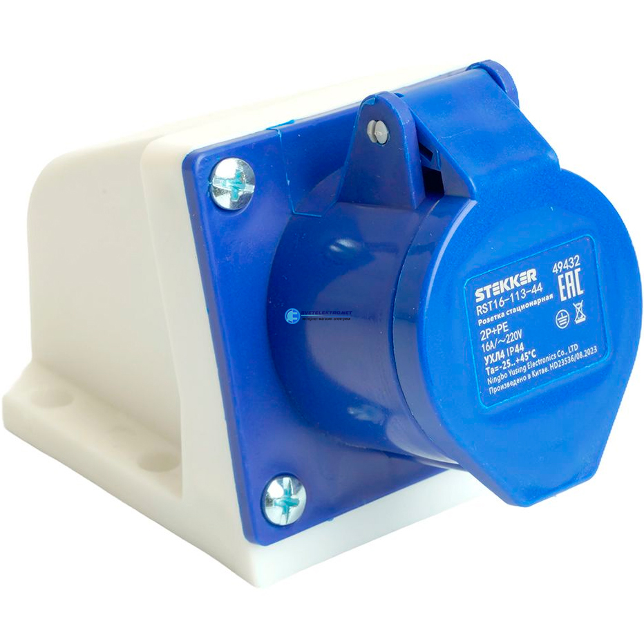 Розетка стационарная ST-113 16А 220В 2P+PE IP44, код RST16-113-44, производитель Stekker