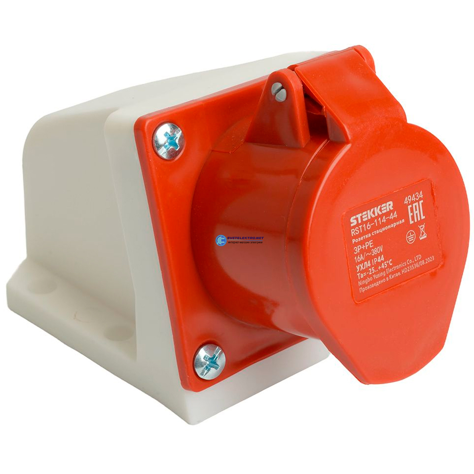 Розетка стационарная ST-114 16А 380В 3P+PE IP44, код RST16-114-44 , производитель Stekker