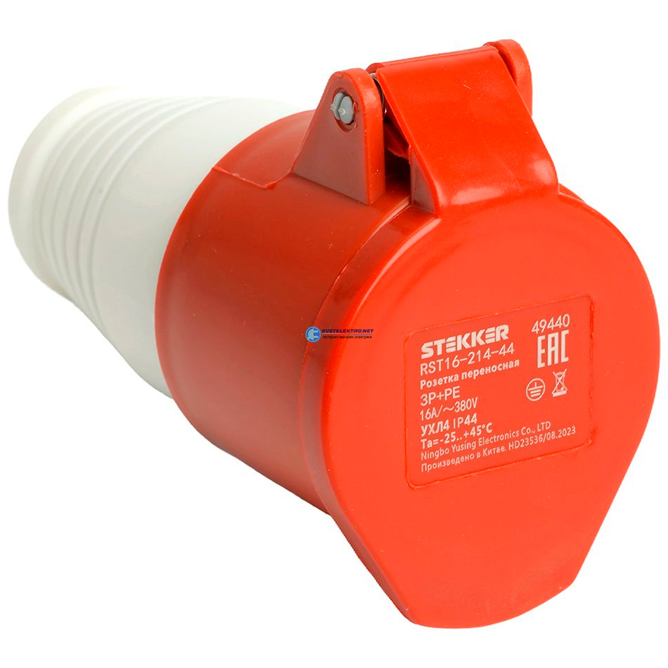 Розетка переносная ST-214 16А 380В 3P+PE IP44, код RST16-214-44, производитель Stekker