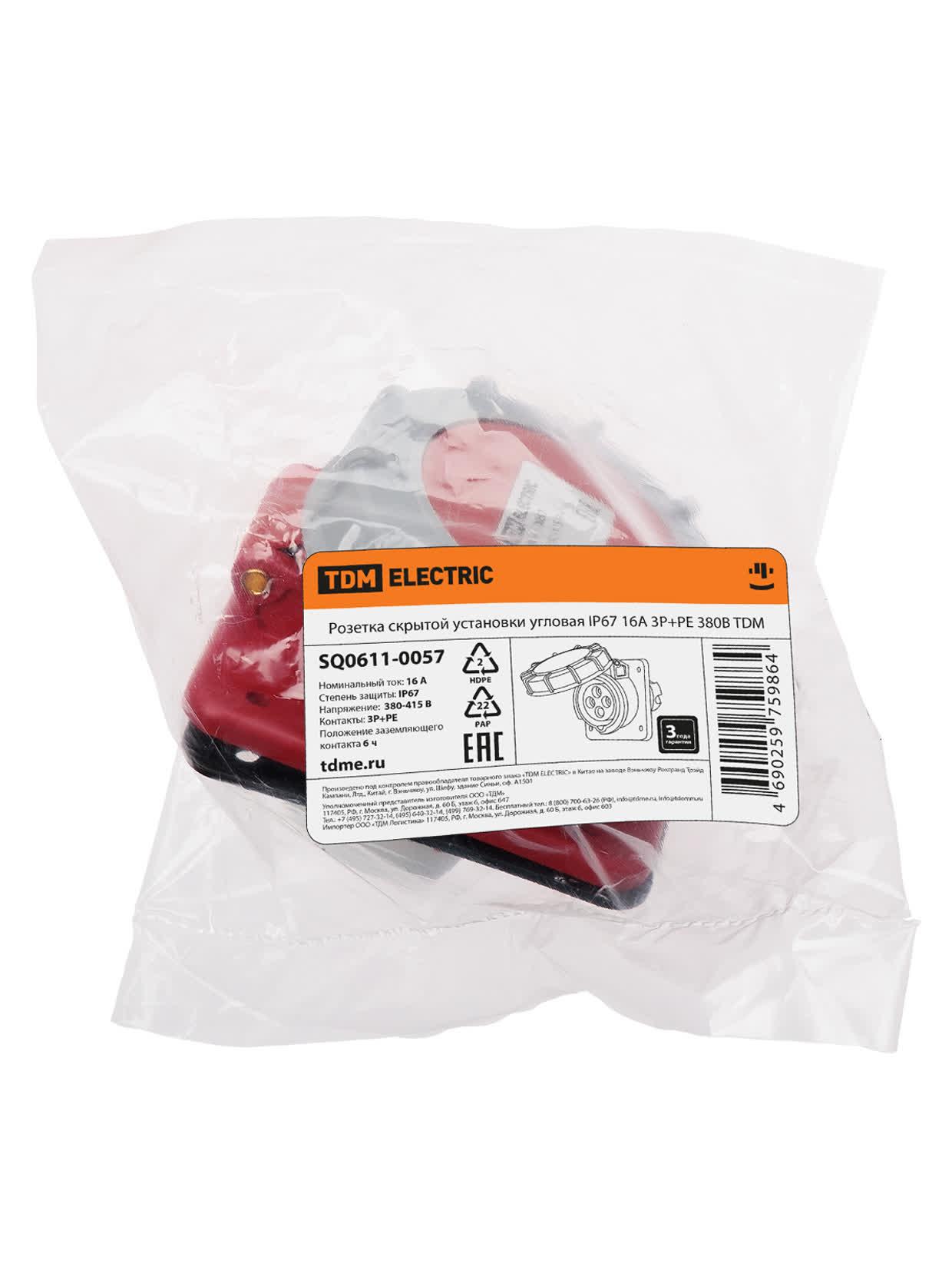 Розетка скрытой угловая IP67 16А 3Р+РЕ 380В, код SQ0611-0057, производитель TDM