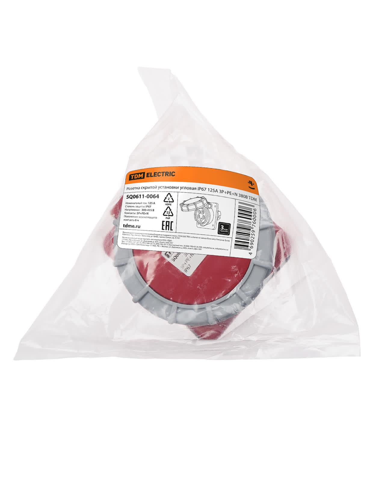 Розетка скрытой угловая IP67 125А 3Р+РЕ+N 380В, код SQ0611-0064, производитель TDM